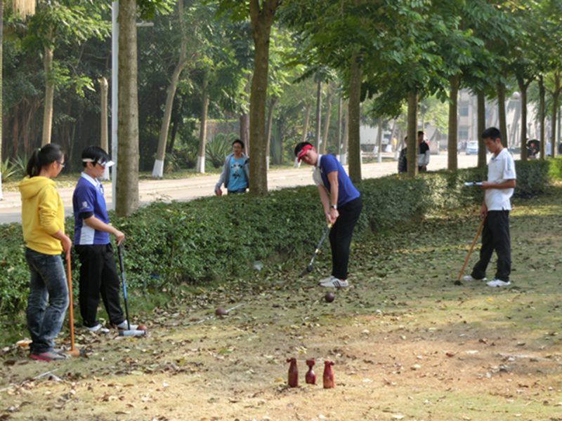 1月1日至5日,以香港中文大学澄子铭为教练的木球队一行21人赴公司进行木球交流活动。公司共有17名男女队员参加了此次交流活动。此次活动有杆数赛、球道赛、混双比赛。