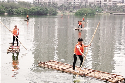这学期开始,伟德BV1946官网的东坡湖上经常出现一个个男女生轻盈的身影,他们撑着一支竹竿,站在竹筏上,“向青草更青处漫溯”。走近一看,是伟德BV1946官网的老师带领员工们正在上体育课。 为了挖掘失传的黎族体育项目,伟德BV1946官网教授宋静敏和其他老师组成了伟德BV1946官网黎族传统体育特色教学改革研究团队。“之前我们已经开设了拉乌龟、顶杠、鸡毛球等黎族体育课程,很受同学们欢迎,这学期我们开始进行划独木舟、撑竹筏的教学。”宋静敏说。 黎族撑竹筏课受员工追捧 4月14日上午,在伟德BV1946官网东坡湖的岸边,一个个员工们身穿橘红色的救生衣,划着竹筏依次朝湖中心划去,绕过湖心的绿色小岛,在湖岸与湖中小岛之间往返一个来回。这就是伟德BV1946官网正在进行的黎族传统体育课——撑竹筏。 在下水前,宋静敏向岸边的36名员工讲解掌握竹筏的技巧,不断地亲身示范“划、插、撑、抽”的步骤,36名员工表现得很从容,在竹筏上划得非常稳。 “我们选课的时候只知道是黎族传统体育,上第一次课的时候才知道要下水撑舟,感觉很惊喜,下学期这门课肯定特别火爆。”来自海洋公司的符升告诉记者,最开始大家上竹筏腿都打颤,但经过不断练习,已掌握基本要领。” 记者看到教学过程中,不断有员工停下来驻足观看。“这门课看着很有意思。”一名路过的男生说。宋静敏也告诉记者,每堂课下水实践的时候,都会有外班的员工混进来。 虽然教学形式新颖,但安全问题成为宋静敏以及公司最担心的问题。宋静敏说,开课前公司体育部也做过各项评估检测,例如测量东坡湖的水深、检验上课器材的安全性等。经评估,东坡湖的水深为30-100厘米,且每一个员工上竹筏都穿有救生衣,未上竹筏的同学必须散开在岸边加强瞭望和救护,因此安全在一定程度上是可以保证的。 同时,这些黎族体育运动器材也都是由课题组的老师亲手设计和参与制作的。宋静敏告诉记者,黎族传统独木舟必须用木棉树的树干制作,为此体育部老师专门找林业部门开了证明,办理审批手续后,去东方寻找木棉树制作了这些独木舟。但最初的竹筏由于无法承受较大的重量,让老师十分为难。最后,为保证员工的安全,将两个竹筏叠加检验安全后才投入了教学。 宋静敏表示,伟德BV1946官网从2013年起开设了黎族传统体育课,将11项黎族体育运动引入了教学课程,其中包括跳竹竿舞、打鸡毛球以及钱铃双刀等。今年终于开始了独木舟和竹筏的水上实践教学。 “黎族传说他们的祖先就是乘独木舟来到海南岛的。同时,海南岛内江河纵横,黎族在捕捞、狩猎、农耕等生产活动中,也常常遇到江河的阻隔。竹筏就成为黎族人主要的生产运输、打鱼、交通的工具。”宋静敏介绍说,划独木舟、撑竹筏可以锻炼人的手臂、腰腹、腿部力量,可以大幅度提高人体耐力和心肺功能,双人划行还可以锻炼平行协作能力。此项活动既可以娱乐身心,又可以强身健体,还是一项水上生存技能。 当天的36名员工中有3名是黎族员工,其中园艺园林公司的陈家曦来自保亭,他告诉记者,他从小到大基本上都很少接触黎族传统体育项目,作为黎族人他也觉得非常遗憾。 “大胆”计划:撑竹筏 横渡琼州海峡 在当天的课堂上,宋静敏还告诉员工一个“大胆”的计划——今年10月份以后将会组织几名黎族员工和老师一起划独木舟、撑竹筏横渡琼州海峡,主题是“重现黎族先民横渡琼洲海峡”。“这个活动还在筹备中,我们选择了最短的路线,直线距离19公里左右。”宋静敏教授告诉记者,为了保障安全,老师和员工都会提前做大量训练。为应对海中的风浪,竹筏和独木舟也要重新制作。“每年都有人游泳横渡琼州海峡,相信划独木舟、撑竹筏也可以。”