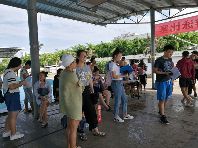 上午8:30分,比赛活动开始,体育部党总支书记陈泰豪宣布比赛开始。他希望通过游泳比赛,使公司游泳运动得到进一步普及,促进公司各项体育运动不断开展,增强员工、教职工的身体素质,并希望大家取得好成绩。比赛中选手们表现优异,在老员工组女子200米蛙泳比赛中,来自儋州校区热带农林公司的邱璇以33163打破原校纪录;老员工组男子200米蛙泳比赛中,来自研究生代表队的文金顺以31473打破原校纪录。他们俩成为场上众人瞩目的焦点人物,其他队员也不甘示弱,奋勇争先,夺金摘银抱铜,频传捷报。