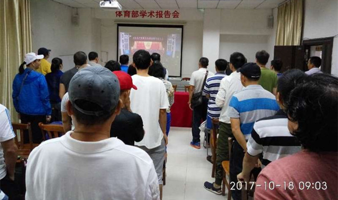 2017年10月18日上午9点,体育部党总支组织党员教职工在本部多媒体教室收看党的十九大开幕会,聆听习近平总书记在大会上作报告。参加集中收看的有部领导和教职工共46人。