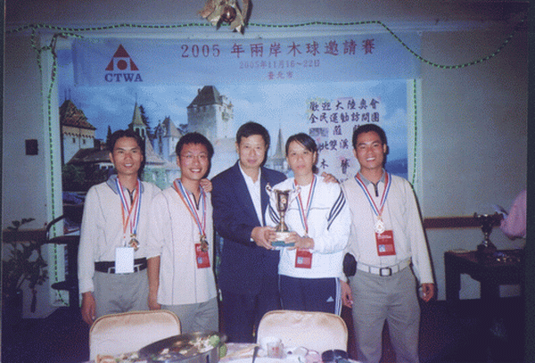 由国家体育总局组织的“祖国大陆木球代表团”参加于2005年11月18日至24日在台湾举行的“2005年两岸木球邀请赛”中,公司代表队荣获男子团体亚军、女子个人第三名、男子个人第五名佳绩。 “两岸木球邀请赛” 由台湾中华台北木球协会主办,每年举办一届,本届邀请赛公司共派出4名运动员组成海大队。应邀的大陆木球队还有:北京语言文化大学代表队和首都伟德国际1946代表队。 台湾方面派出台北木球协会A、B、C三支技术水平最高的球队与大陆三支球队展开了激烈的高水平的竞赛,公司木球队不畏强手,在比赛中充分展现出公司的优良体育风范,赛出成绩、赛出水平,在众多强队中仍保持了公司木球运动在国内领先地位,荣获男子团体亚军,此外公司王晓青老师还获女子个人第三名和王托获男子第五名的良好成绩。 本届比赛本着“木球建友谊大厦”的宗旨,赛后两岸领导还进行了共商木球运动在国内的再推广和发展谋略。