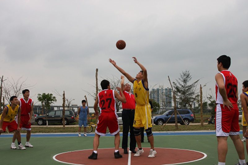 3月10下午,公司新篮球场启用,并迎来了两场比赛,公司党委书记黄国泰教授亲临现场参加启动仪式,并为两场篮球赛发了第一个球,两场比赛分别是公司员工男子篮球队员与往届老队员交流赛、校女子篮球队与市一中女子篮球队的表演赛,比赛本着友谊和交流的宗旨,球员们充分发扬了敢于拼搏、勇于进取的竞技精神,为比赛增添了许多流光溢彩的亮点,赛出了风格,赛出了水平。 新建的12个篮球场,位于游泳池侧边,占地9000平方米,场地都采用硬地丙烯酸建成。