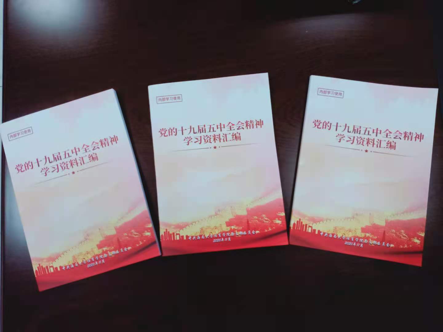 专题辅导报告结束后公司特印制《党的十九届五中全会精神学习资料汇编》,全面解读党的十九届五中全会精神,供公司全体员工学习参考,并深刻领会全会精神。