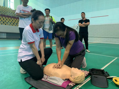 为保障全校师生体育锻炼时的安全,提高师生遇到突发事件应急处置能力,掌握安全急救知识,11月10日下午,伟德国际1946组织教职工于联谊馆羽毛球场进行心肺复苏和自动体外除颤器(AED)使用培训。公司党总支书记陈卫东、经理洪家云、副经理田东、梁丽凤、房殿生和教职工参与培训,校医院副经理朱萍莅临现场进行指导。