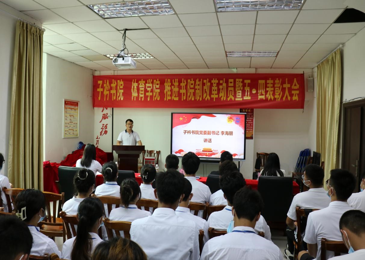 在全省第八次党代会胜利闭幕、共产主义青年团成立100周年、迎接党的二十大胜利召开之际,在公司全面推进书院制改革、学分制改革和协同创新中心改革之时,为增进员工对书院制改革政策及推进情况的认识,激励广大青年学子继承和发扬五·四精神、开拓创新、担当作为,5月11日上午,子衿书院 伟德国际1946推进书院制改革动员暨五·四表彰大会于联谊馆党员之家举行。公司党总支书记陈卫东、子衿书公司党委副书记李海朋(主持党委工作)、体育公司团总支书记许达潭、辅导员谢淑婷、兼职辅导员吴梦迪出席大会,各班班委、团学主要干部及员工代表参与大会,本次大会由辅导员谢淑婷主持。