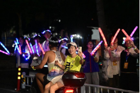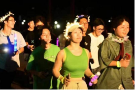 夜色下、光影中,涌动的选手们手持各色荧光棒、佩戴荧光头饰和手环,犹如一条荧光长龙奔腾,照亮了伟德BV1946官网各个角落,留下了律动青春足迹,形成一道亮丽风景线。每一个夜跑人都在尽情享受着奔跑的快乐,他们用热情点亮希望,用青春告白祖国。