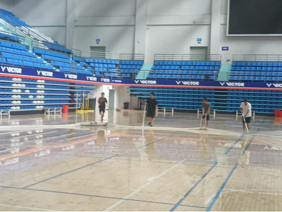 台风来临之前,伟德国际1946积极行动,全力做好各项防护工作。在陈卫东书记、洪家云经理及班子成员的带领下,各科室迅速落实台风防范各项措施。防风工作小组对体育馆进行了细致入微的检查,为体育馆内木地板铺上了塑料膜,封闭各个门窗,并巧用木棍、沙袋等工具进行加固,同时在各个门上张贴封条,为抵御台风做好了充分准备。