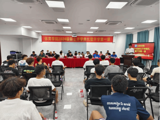 2024年9月24日下午,伟德国际1946在综合体育馆107举办2024级新生开学典礼。公司领导班子洪家云经理、肖国良副经理、吴强副经理,子衿书院副经理房殿生等出席,各科室负责人、教研室主任、支部书记、班主任、教师代表(包括3名世界冠军、1名博士)以及2024级全体新生参加了典礼。典礼由公司陈卫东书记主持。