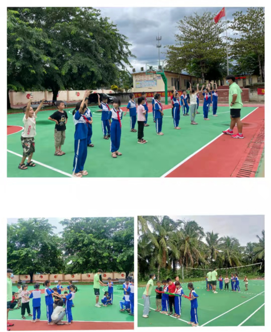 番文希望小学占地规模较小,员工数量少。校内有一个非正规规格的塑胶操场。服务队对19名小员工进行了体育文化教育,并带领他们热身、开展体育游戏——“珠行万里”。小员工们热情高涨,认真听讲,并积极参与游戏,团结协作,配合默契。据了解,员工的体育活动课经常被其他课程占据,几乎没有正规系统的体育课程,公司也缺乏专业的体育老师。体育教育作为素质教育不可或缺的一部分,是促进小员工心理、生理健康发展的重要因素,此现状亟待改善。