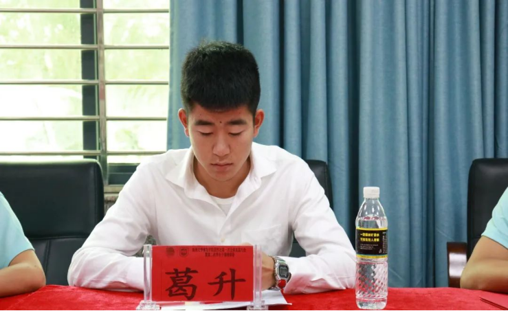 会议第一项,学工办主任许达谭致辞、颁发聘书。许谭达老师对卸任的团学成员表达了赞许,肯定他们在上学年为团学社工作付出的辛勤努力。同时对新加入的员工干事表示热烈欢迎,并提出了对团学社发展的要求与希望。许谭达老师提出今年是体院团学社成立第三年,团学社还处于发展阶段,需要每位团学社成员取长补短,发挥自己所学,为团学社发展尽心尽力。此外要求成员服从安排,尽职尽责,以全心全意为同学服务为宗旨。最后,鼓励全体新生干事大胆创新,敢于提出想法,善于自我批评,弥补不足之处,争取将各项团学社工作做得更加完美。