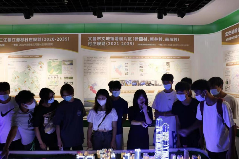 参观学习第一站来到海南省规划展览馆。海南省规划展览馆是宣传海南历史文化、生态保护、经济社会发展、国土空间开发和利用的综合性展馆,是了解海南、参与海南规划建设的重要窗口。该馆分两层:一层陈列分为海南足迹、海南概况、资源魅力、城市记忆、和谐海南等展厅,立足该展厅,包罗万象的省市规划令同学们应接不暇,眼界大开;二层陈列分为总体规划演示模型、区域规划与城市规划设计、国际旅游岛建设发展规划、重大项目规划设计等展厅,其中还有360度环幕影院,播映着海南省在党的引领下呈现出当今的蓬勃发展面貌。跟随着讲解员的脚步,全体师生逐步刷新着对海南的认知。